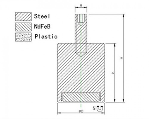 圆柱形强磁吸盘带外螺柱,其强大的吸力可用来悬挂和吸附。